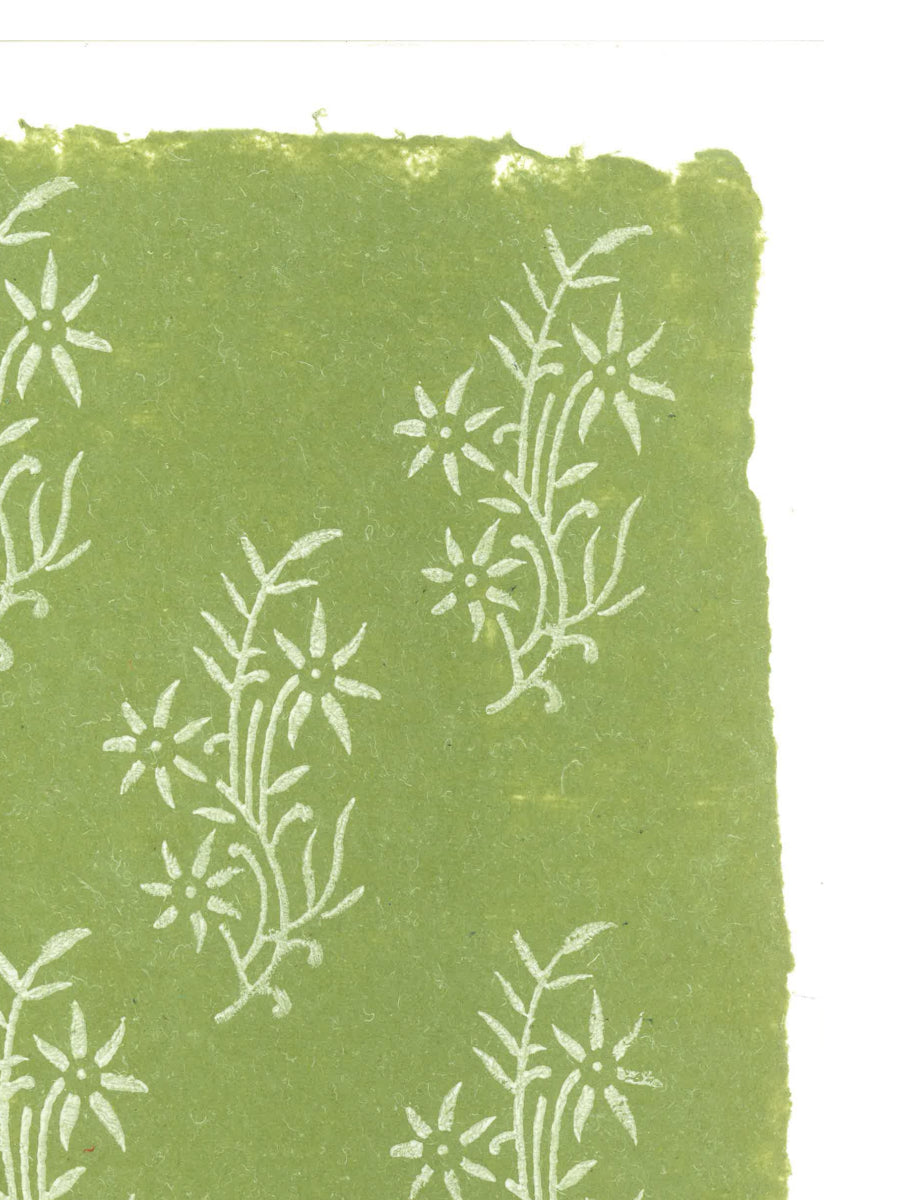 A single wood block print in white, depicting a bouquet of flowers can be used as a gift wrap or for home decor purposes.