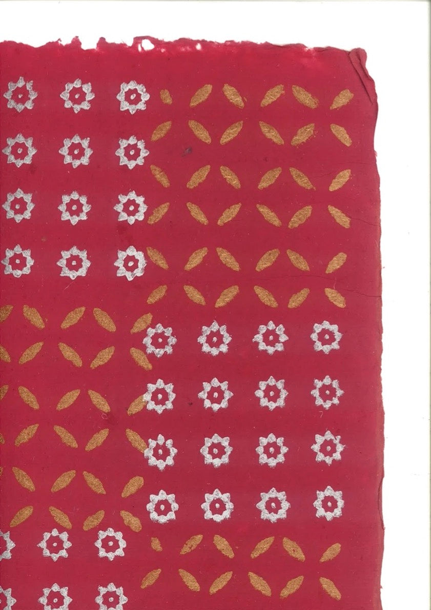 Made to recreate the appeal of the traditional Indian 'bandhani' technique of dyeing. Two square blocks of different designs are composed like a chess board. We would leave the use of this paper upto the users imagination.