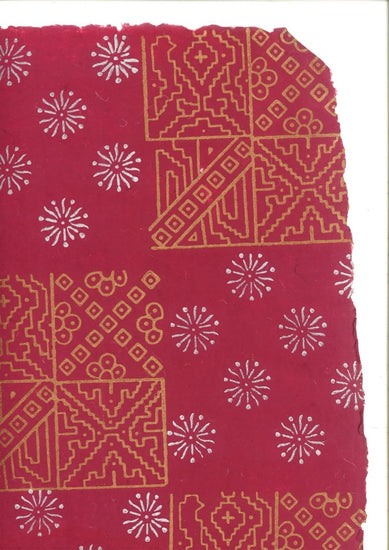 Made to recreate the appeal of the traditional Indian 'bandhani' technique of dyeing. Two square blocks of different designs are composed like a chess board. We would leave the use of this paper upto the users imagination.