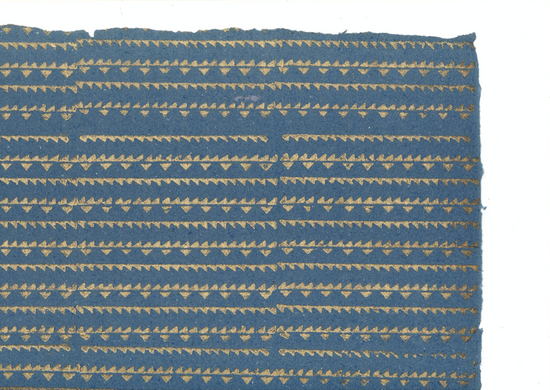 A linear pattern in gold, hand block printed on a beautiful Aegean Blue paper.