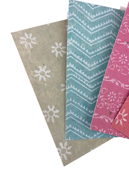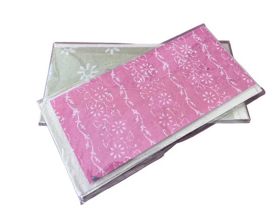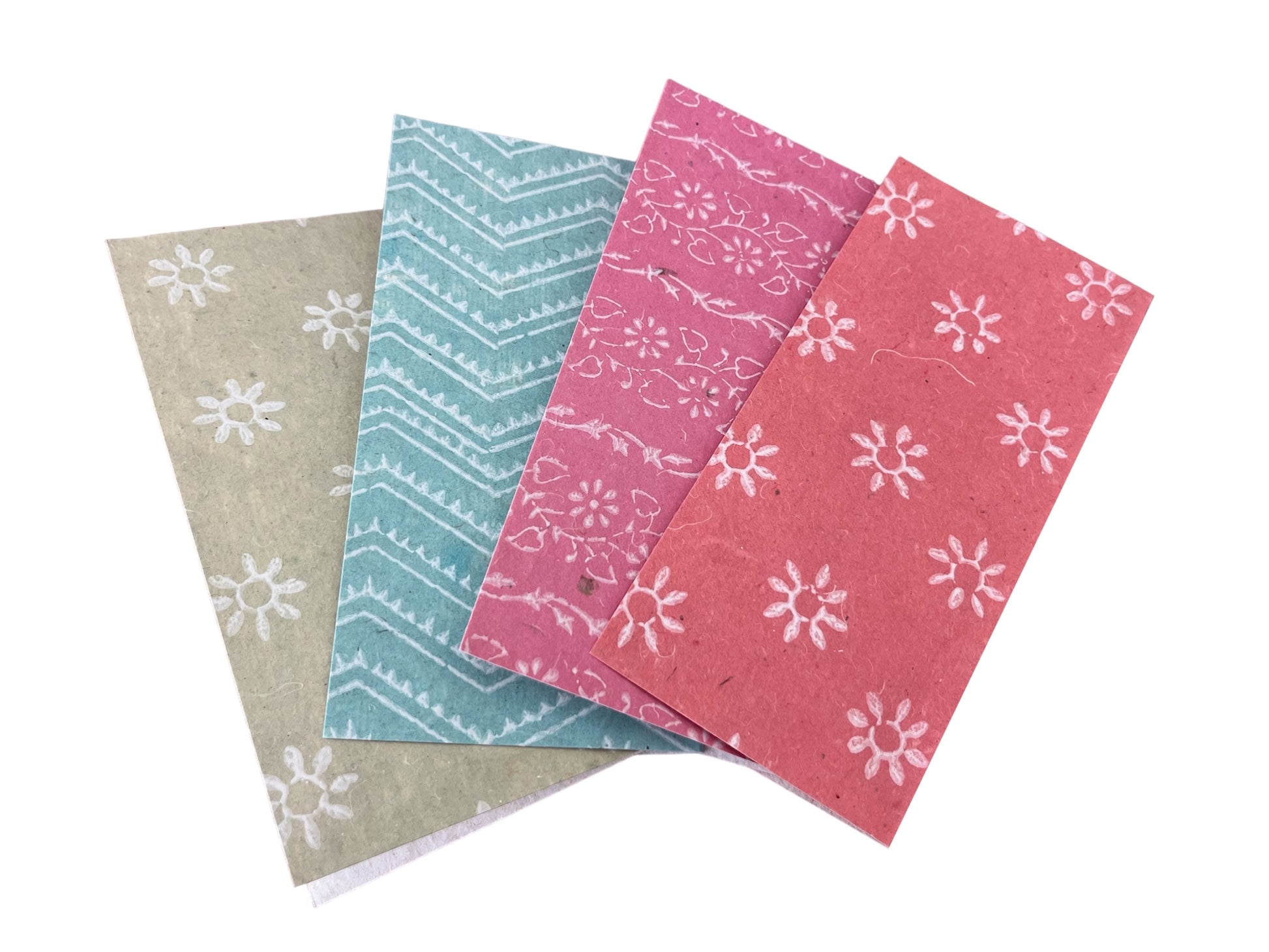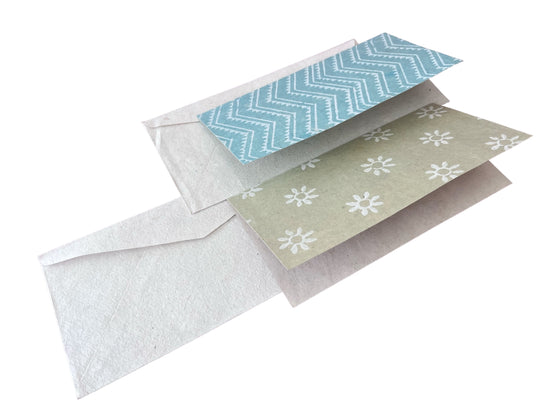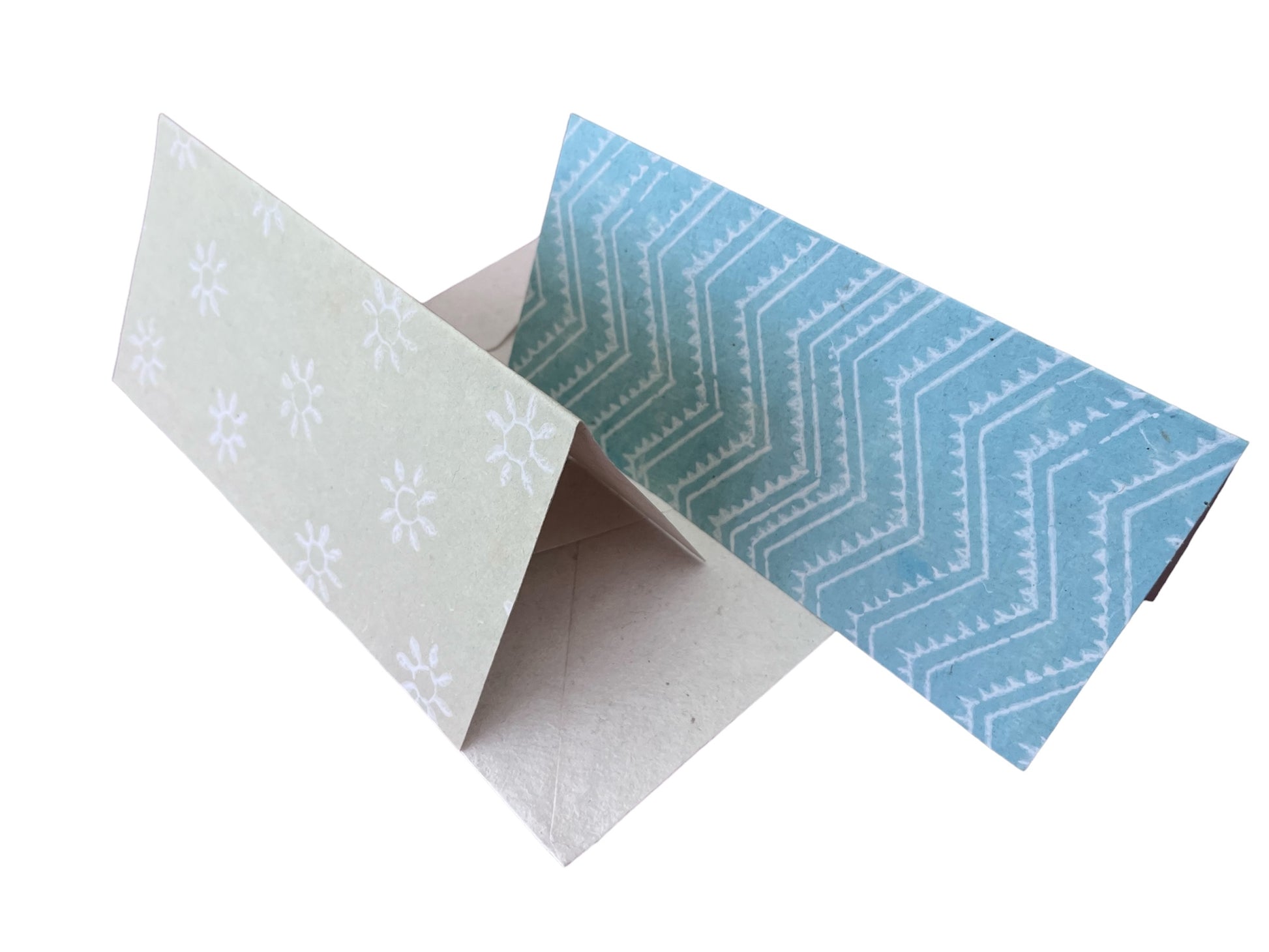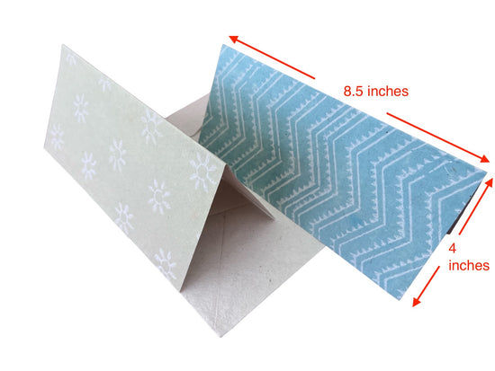 A unique handblock printed card in white is available in warm and cool colors. These are available as a set of 2 in every purchase. They are ideal to convey your feelings to near and dear ones.