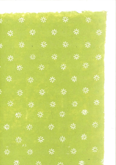 A repetitive motif of a single flower, on a pear green paper, is ideal for wrapping a gift.