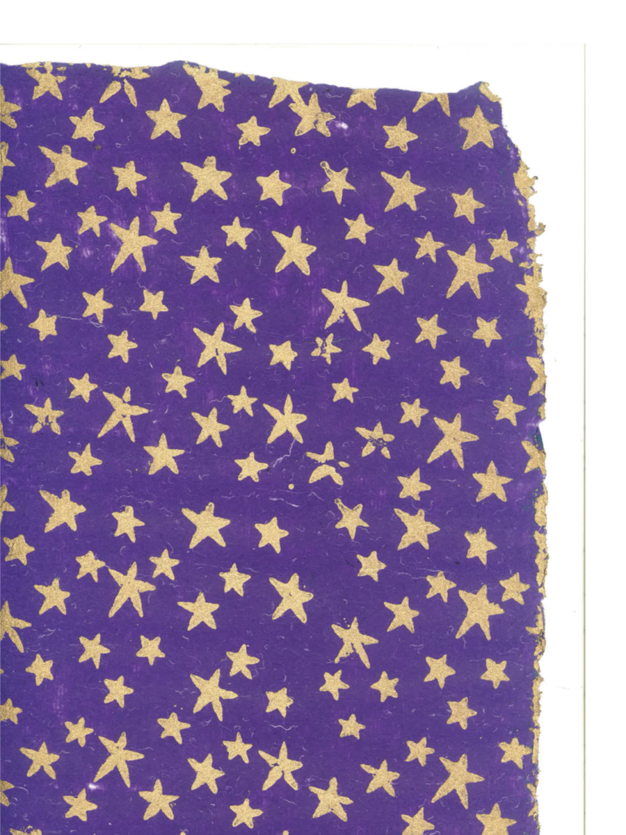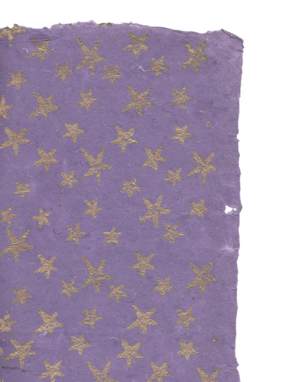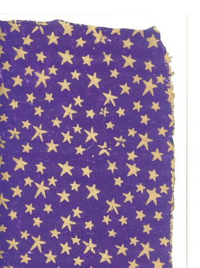 This golden star print on violet is a must have. Ideal for gift wrapping a special gift, or folding it into something creative for children. The 2 images show the variation in the color of the paper.