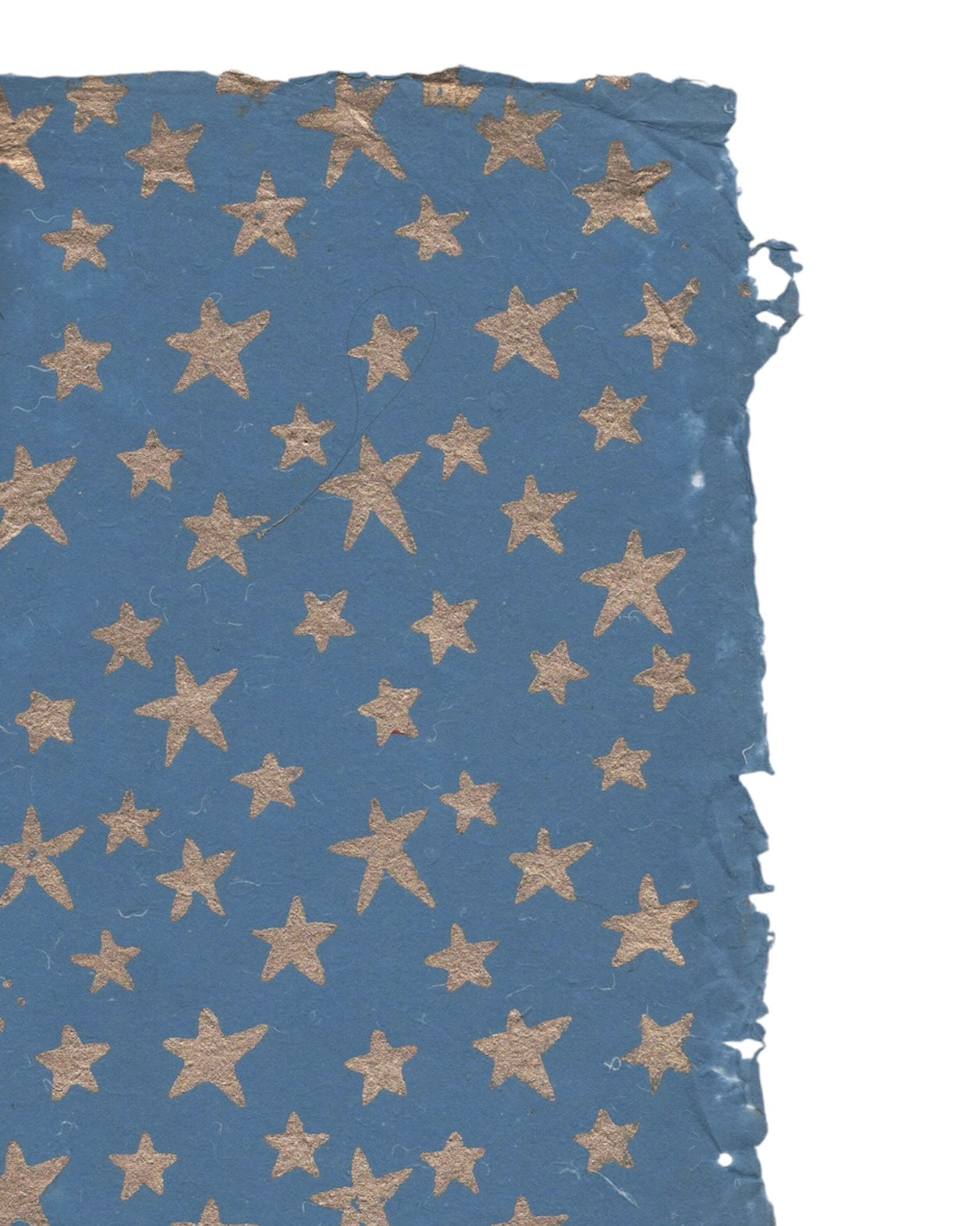 This golden star print on what we imagine is a blue of the Aegean sea, is a must have. Ideal for gift wrapping a special gift, or folding it into something creative for children.